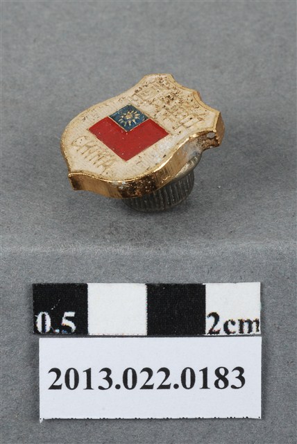 本件中華民國國旗紀念章原為張星賢先生之收藏品,由其四子張昭平先生捐贈給臺灣歷史博物館。此為平頂帽扣式金屬沖壓徽章,造型大致呈盾牌形狀,上端作波浪角狀,下半段較為圓鼓,下端中央呈尖角狀,正面烤漆上色,圖案以白色為底,正中央為中華民國國旗圖案,上下分別有金色「中華民國」及「CHINA」字樣。