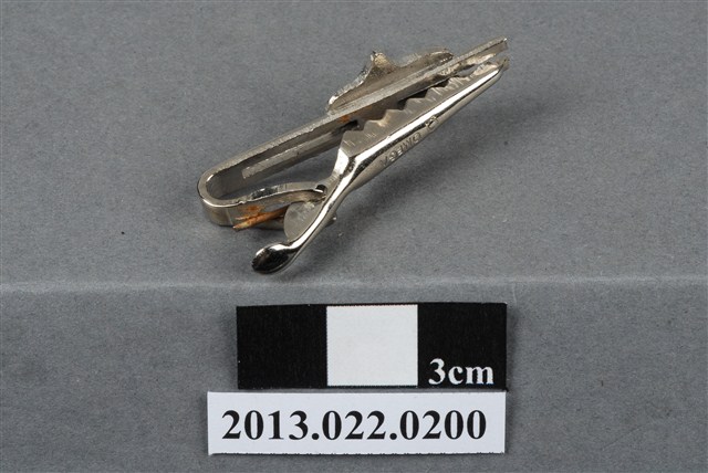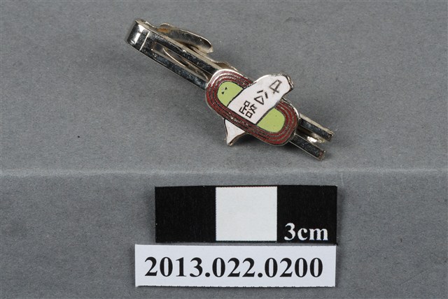 1.本物件為民國57年11月21日至24日所舉辦的臺灣省第4屆公路接力賽紀念領帶夾,金屬材質。紀念章正面有4、「公路」字樣,以及臺灣島與田徑場圖樣,根據上述資訊推測,此物件應為臺灣區第1屆及臺灣省第4屆公路接力賽所屬紀念物。此賽事於24日下午在中山堂前閉幕,第1名為屏東縣,第2名為花蓮縣,第3名為宜蘭縣。本物件表面有鏽蝕現象。