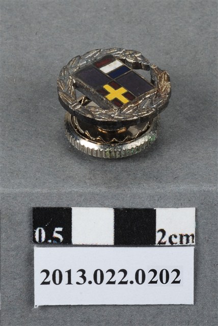 本件1967旗幟紀念章原為張星賢先生之收藏品,由其四子張昭平先生捐贈給臺灣歷史博物館。此為金屬沖壓徽章,外觀大致呈圓形,造型由長方形周圍環繞一圈稻穗所組成。長方形的上方與下方皆鏤空,正面烤漆上色,中央十字框線將圖案分為四等份方塊,右上與左下方塊為黑色,左上角的圖樣由紅、白、藍三色塊垂直排列組成,國際信號旗中代表英文字母「T」,或可解讀為法蘭西第一共和國的國旗,右下角為紅底黃十字圖案,國際信號旗中代表英文字母「R」,另一解讀為瑞典南部斯堪尼地區的地方旗幟。長方形周圍的稻穗與徽章背面皆呈銀色,表面帶有些許金屬氧化的褐色鏽斑,背面所方壓印數字「1967」應為年代,中央接有螺絲及扁圓形螺帽,螺帽表面亦呈銀色,帶有一點青綠色繡斑。