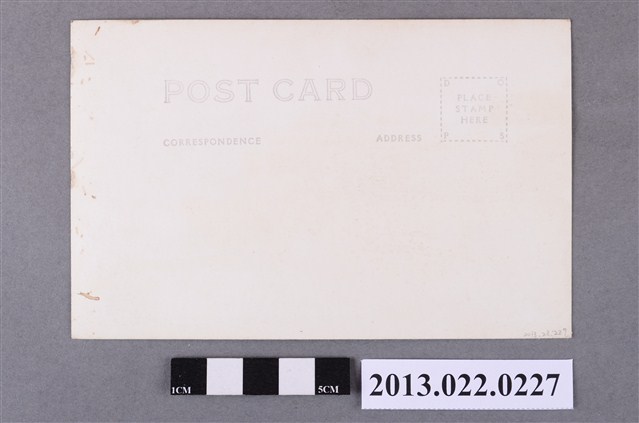 1.美國加州好萊塢山城建築與庭園,為美國加州好萊塢山城(Yamashiro)日式建築與內部庭園風景明信片。明信片整體呈現橫式版面設計,一面為黑白印刷之山城建築與內部庭園景緻照片,另一面為明信片的書寫面。照片展現出山城建築的佈排樣貌與建築迴廊、格子門、雕刻、燈籠等裝飾細節。除了建築特色之外,照片也呈現建築中心的庭院,庭院中間呈圓形,中間有雕塑裝飾,植被則以松樹及小灌木為主,呈現簡約風格。照片右下角有英文註記,註記內容為「INTERIOR PRTIO JAPANESE BUNGALOW JAPANESE GARDENS HOLLYWOOD.」。明信片書寫面保持空白,未曾被書寫,保留「POST CARD」、「CORRESPONDENCE」、「ADDRESS」以及郵票黏貼處之明信片原始印刷格式。2.本件明信片照片拍攝位址位於美國加州洛杉磯好萊塢山丘上的山城(Yamashiro),是一座融合日本、中國等亞洲建築風格的莊園。山城的建造始於1911年,並於1914年完工,由德裔美國籍兄弟Eugene Bernheimer與Adolph Bernheimer聘請紐約建築師Franklin M. Small設計建造。莊園中除了仿造日本的宮殿建築,最受矚目的還有從直接從日本進口而來、具有大約600年歷史的寶塔建築,即為本件明信片所示之寶塔建築。日式莊園並有設計錦鯉池塘、瀑布、拱門等裝飾。本座日式莊園在Bernheimer兄弟過世後幾經易手,曾經作為好萊塢電影俱樂部、電影片場、餐廳等等,也有不少電影巨星曾經到此造訪。山城在2012年以「山城歷史街區——住宅與花園」(Yamashiro Historic District - home and gardens -)之名被列入美國國家史蹟名錄之中。