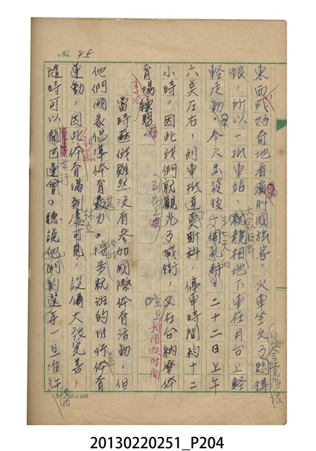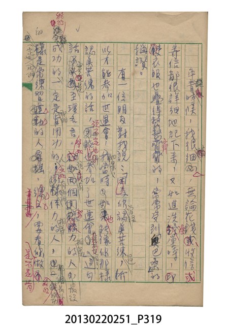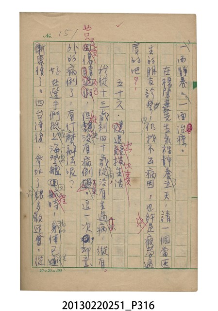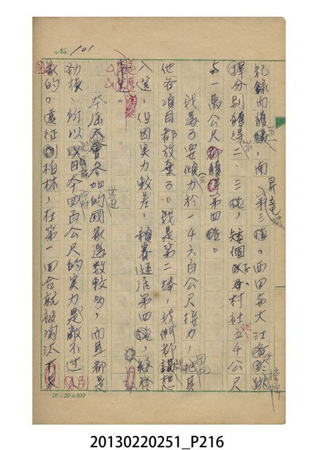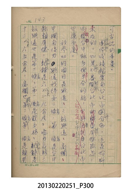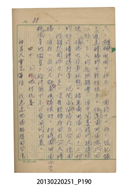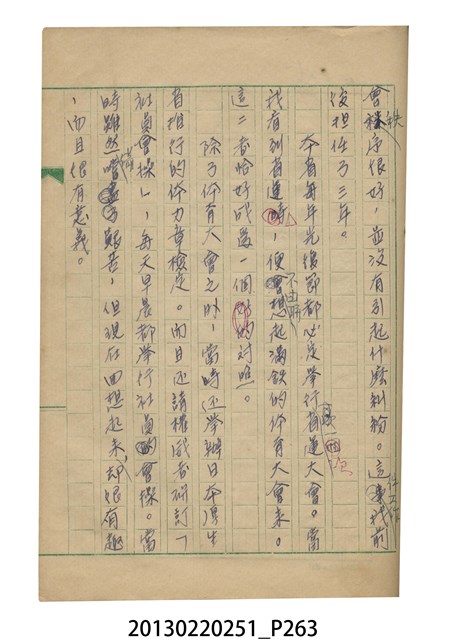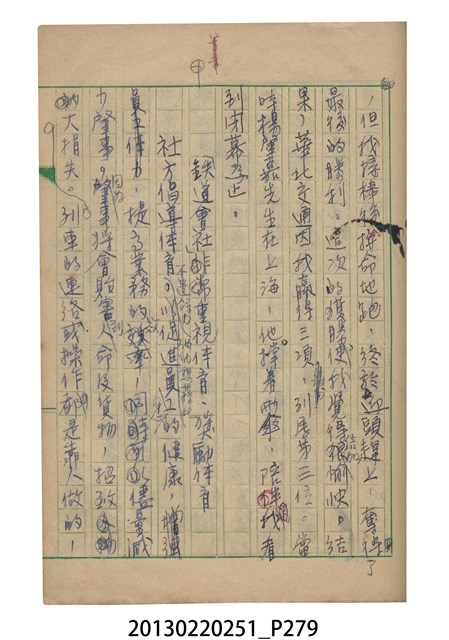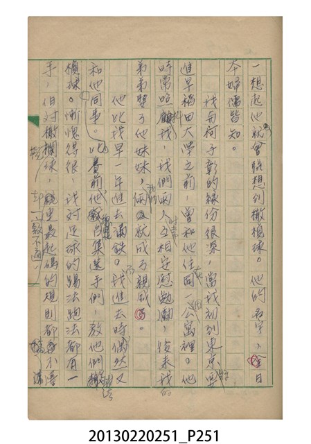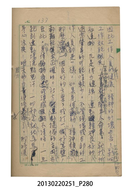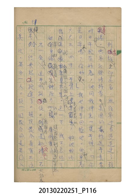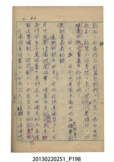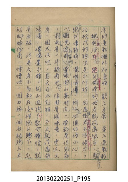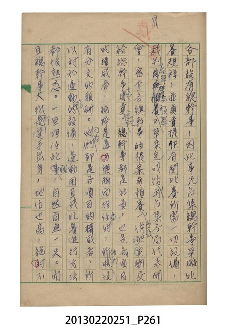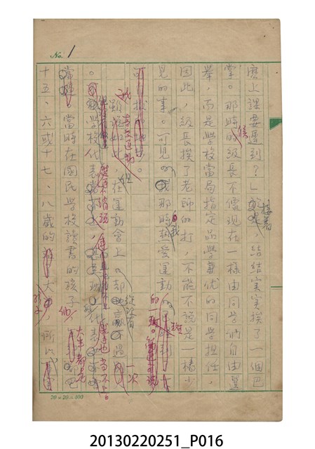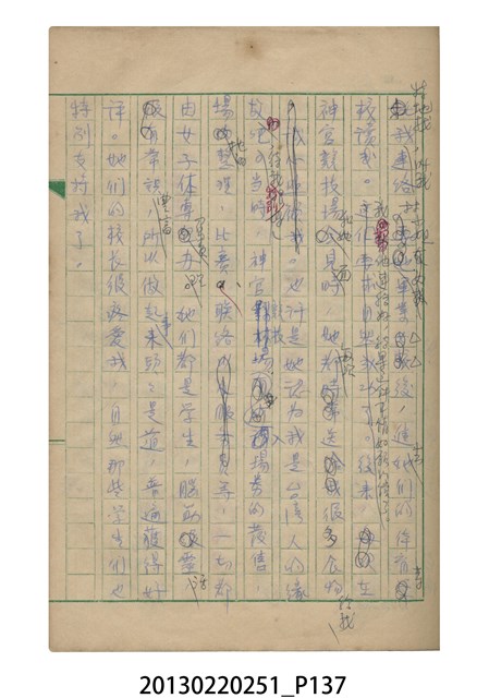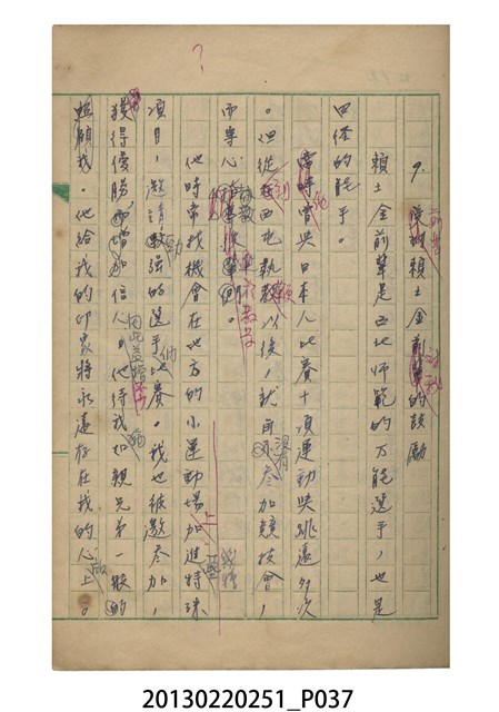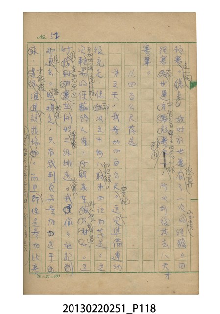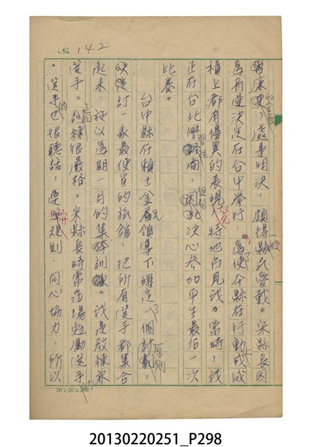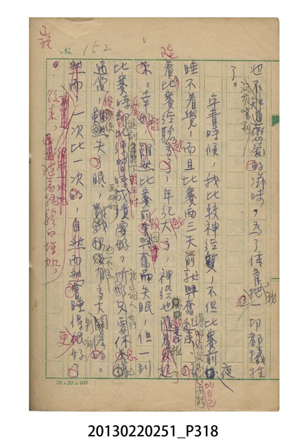 1.本物件為張星賢撰〈我的體育生活〉中文手稿謄本。封面為白色線裝,上面有手寫之「我的體育生涯」題名與「張星賢」簽名。目錄共分為65章,從少年時期(推測是1918年)開始,到1948年參加上海全國運動會之後高掛跑鞋為止,詳細陳述其運動生涯與心路歷程。
