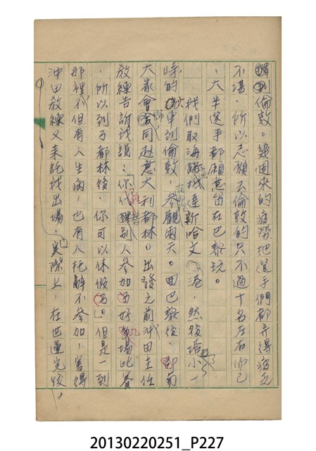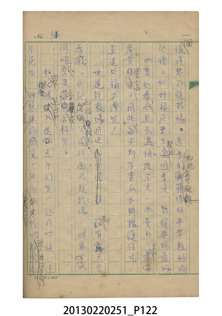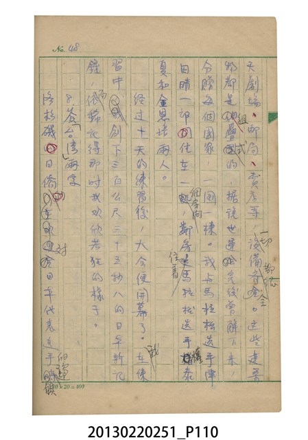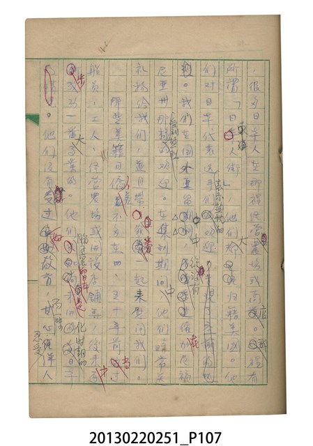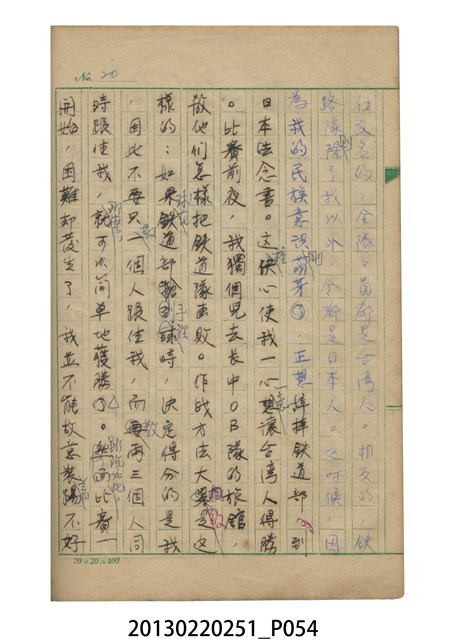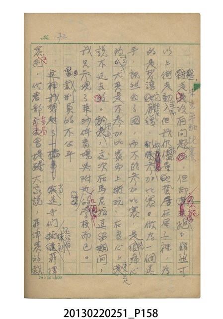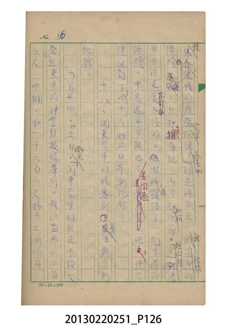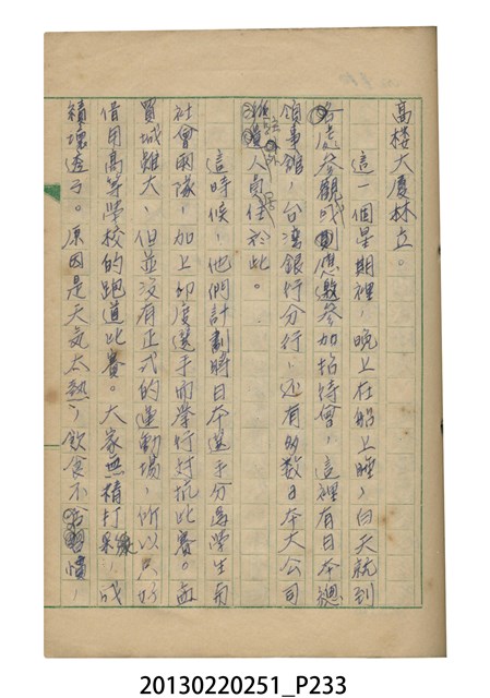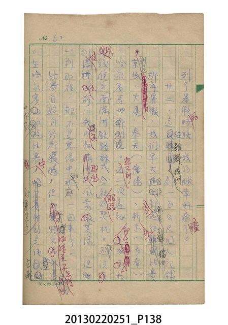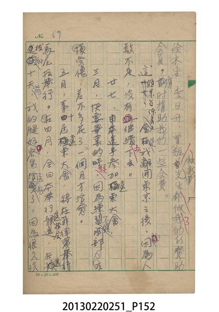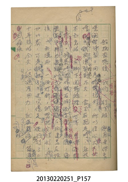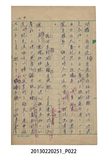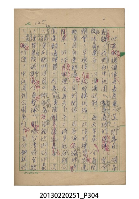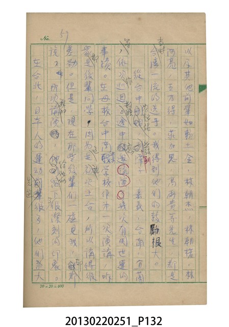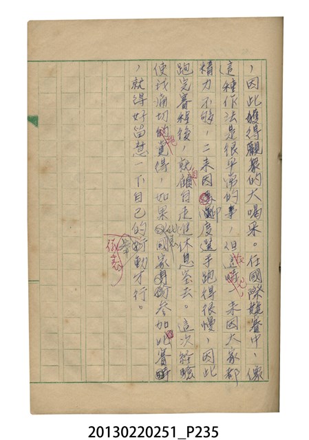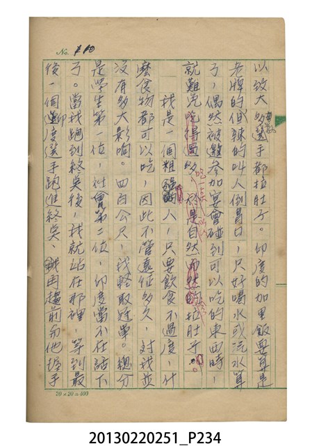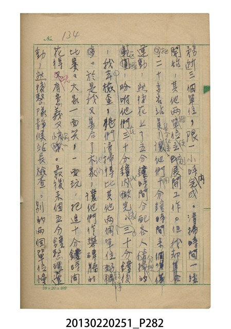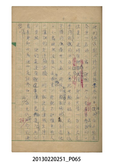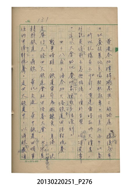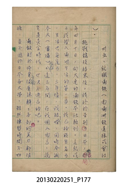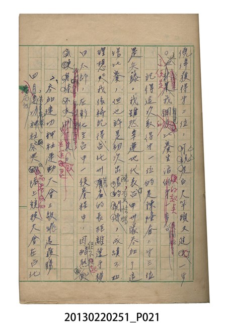 1.本物件為張星賢撰〈我的體育生活〉中文手稿謄本。封面為白色線裝,上面有手寫之「我的體育生涯」題名與「張星賢」簽名。目錄共分為65章,從少年時期(推測是1918年)開始,到1948年參加上海全國運動會之後高掛跑鞋為止,詳細陳述其運動生涯與心路歷程。
