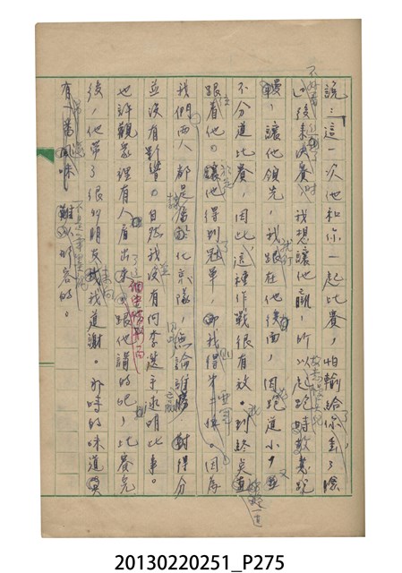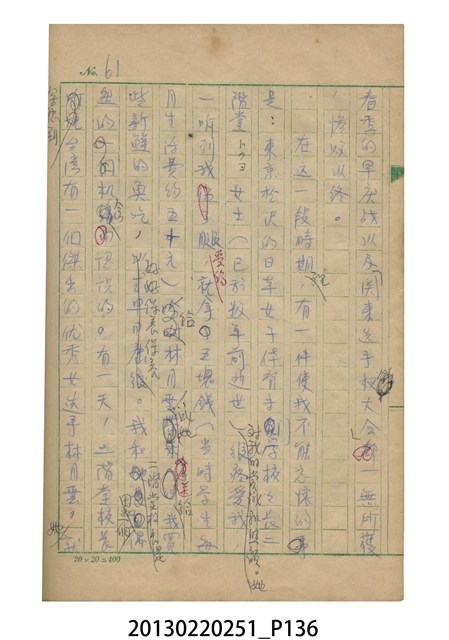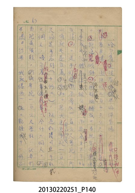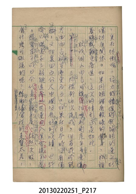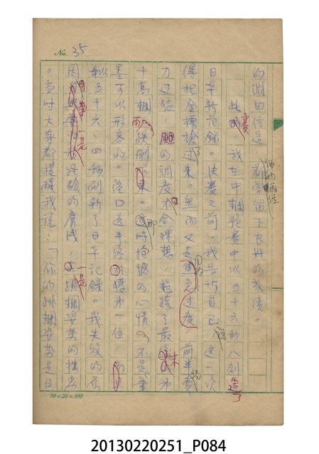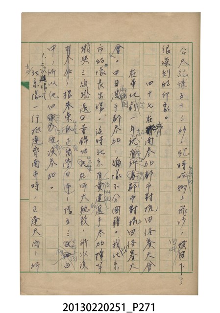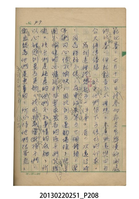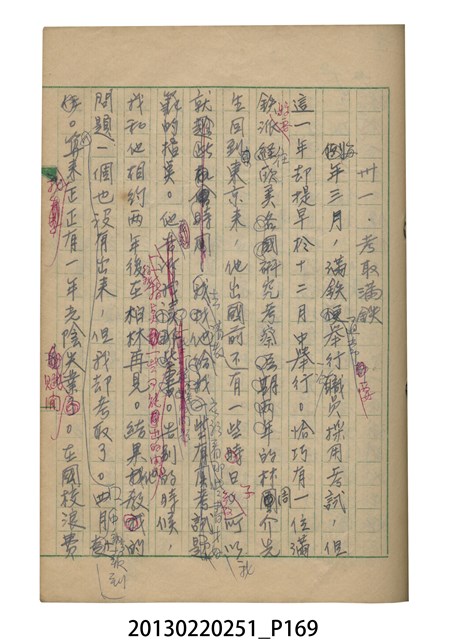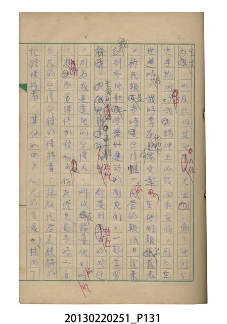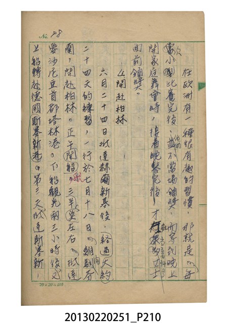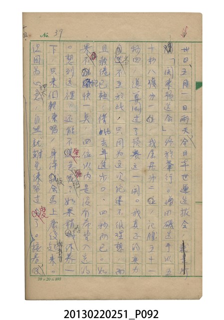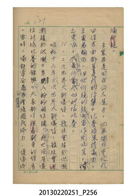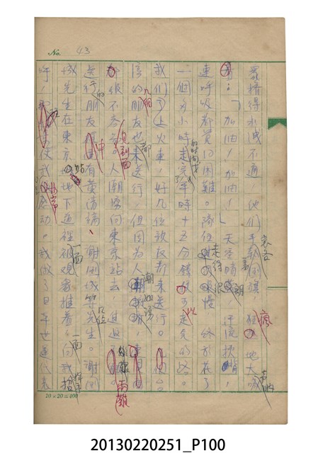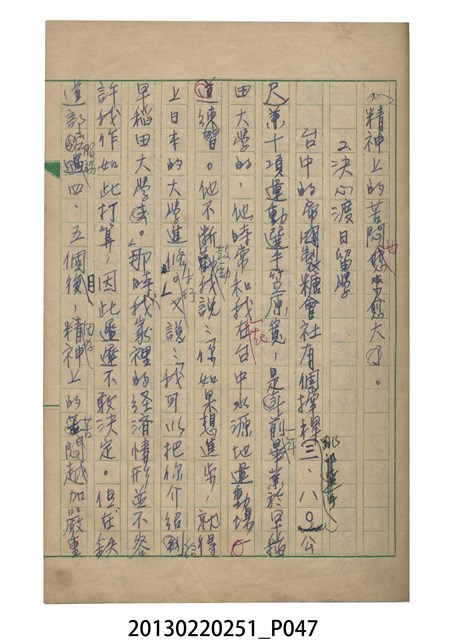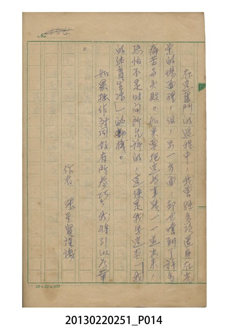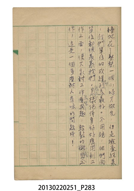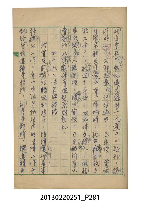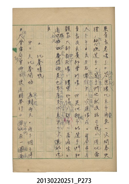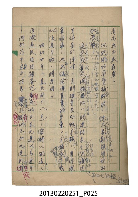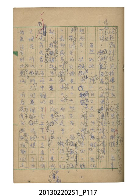 1.本物件為張星賢撰〈我的體育生活〉中文手稿謄本。封面為白色線裝,上面有手寫之「我的體育生涯」題名與「張星賢」簽名。目錄共分為65章,從少年時期(推測是1918年)開始,到1948年參加上海全國運動會之後高掛跑鞋為止,詳細陳述其運動生涯與心路歷程。