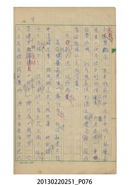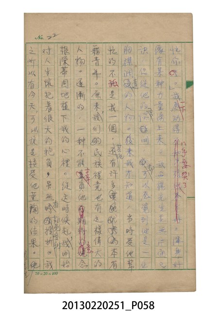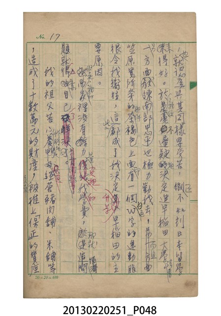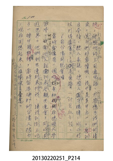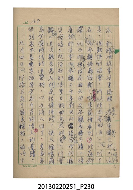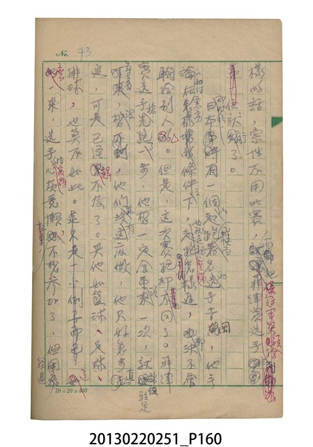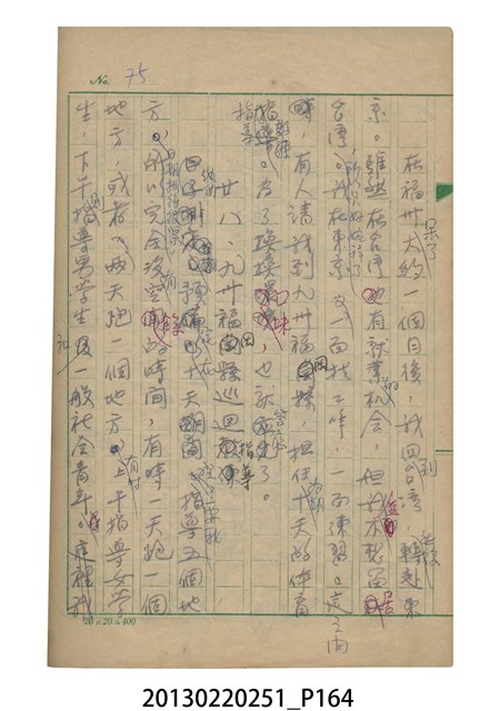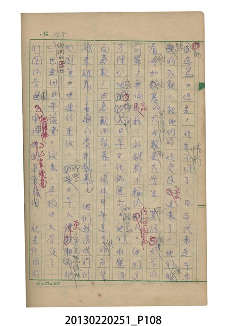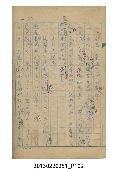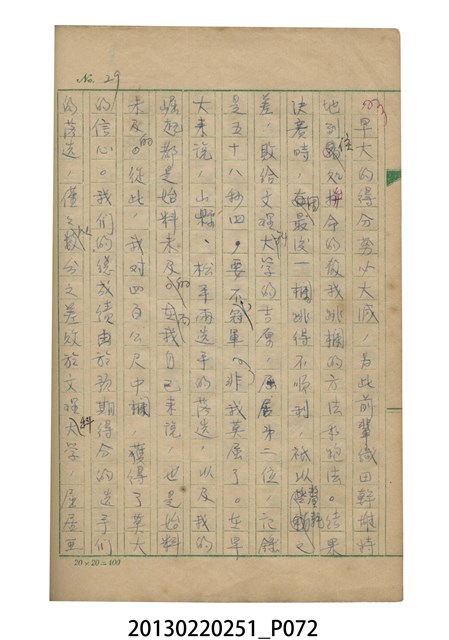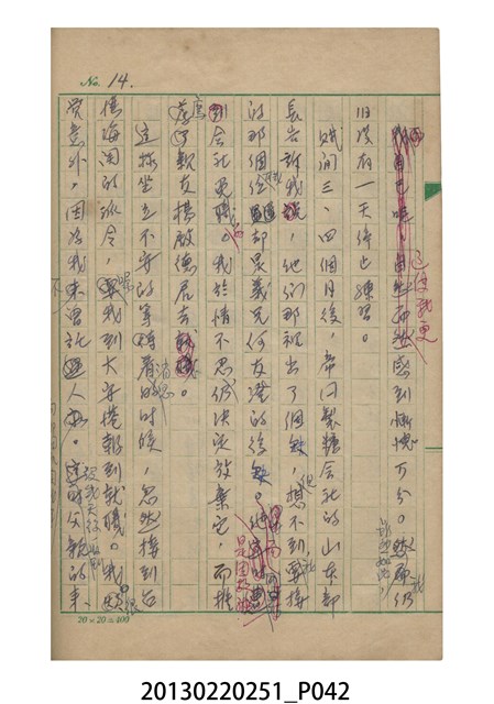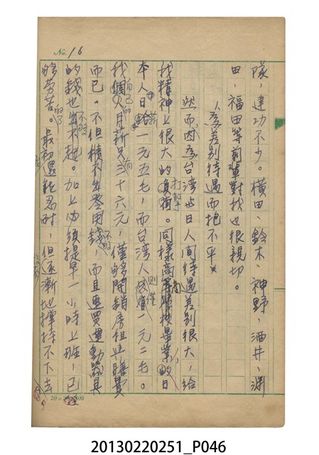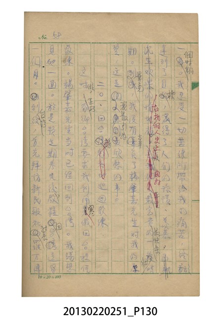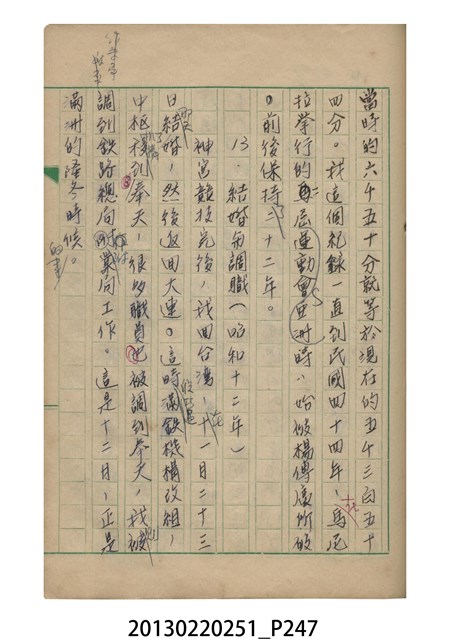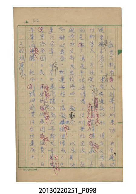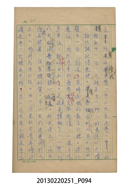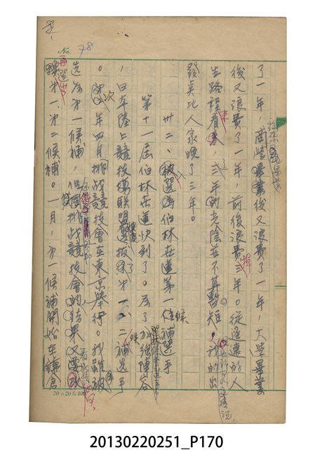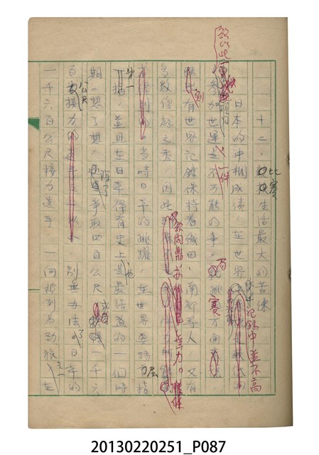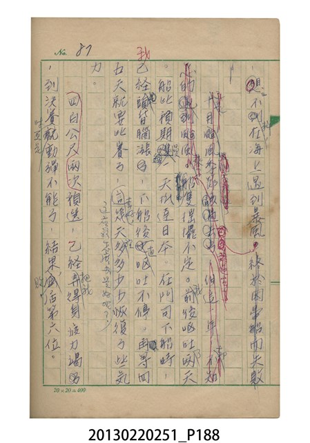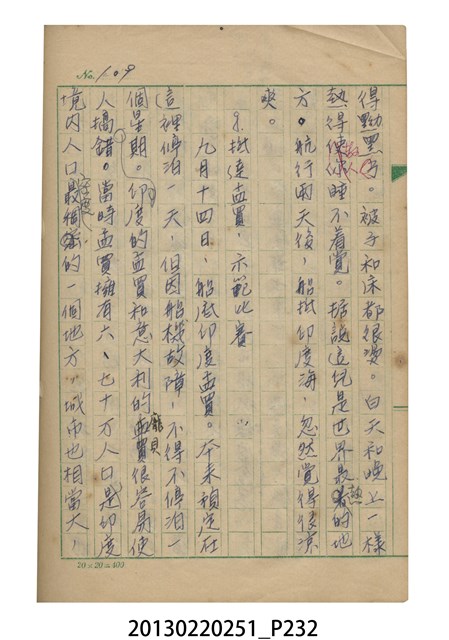 1.本物件為張星賢撰〈我的體育生活〉中文手稿謄本。封面為白色線裝,上面有手寫之「我的體育生涯」題名與「張星賢」簽名。目錄共分為65章,從少年時期(推測是1918年)開始,到1948年參加上海全國運動會之後高掛跑鞋為止,詳細陳述其運動生涯與心路歷程。