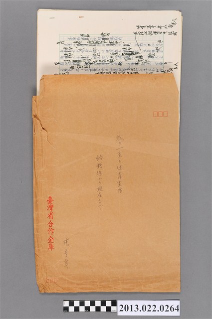 1.本物件為張星賢自傳〈我的一生與體育生活:終戰後到現在〉手稿,紙袋為「臺灣省合作金庫」印製之專用牛皮紙袋,上面有「我的一生與體育生活:終戰後到現在」 的日文手寫字樣,旁邊則署名「張星賢」。