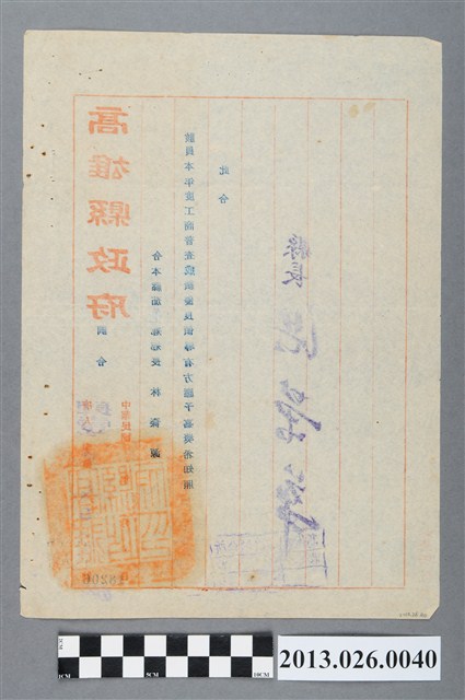 1952年因茄萣鄉鄉長林森源協助工商普查成績優良,高雄縣政府給嘉獎一次之獎勵。 本資料原為101061-0029林森源學歷、工作相關證書合訂本31件之一,內容包括林森源的公學校畢業證書、臺南師範學校畢業證書、公務人員的登記證書、參加各種訓練的結業證書、對於擔任鄉長任內推展鄉政有功的獎狀、獎勵等,這份資料可作為林森源先生生命史的研究,其學歷與經歷的資料相當完整。