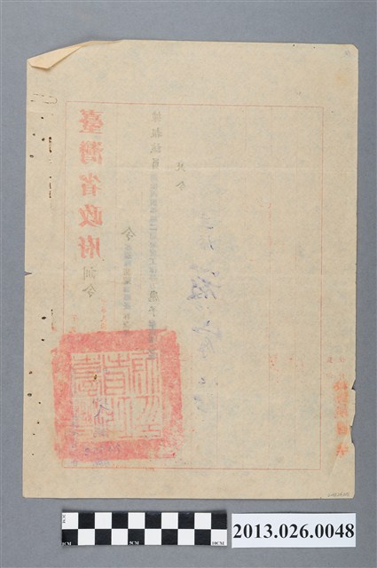 1956年茄萣鄉長林森源因催繳44年第二期地價工作努力,臺灣省政府給予大功一次之鼓勵。 本資料原為101061-0029林森源學歷、工作相關證書合訂本31件之一,內容包括林森源的公學校畢業證書、臺南師範學校畢業證書、公務人員的登記證書、參加各種訓練的結業證書、對於擔任鄉長任內推展鄉政有功的獎狀、獎勵等,這份資料可作為林森源先生生命史的研究,其學歷與經歷的資料相當完整。