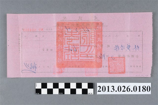 1.本件為中華民國考試院於1972年3月24日開立給林龔添根女士的證書規費收據,該張收據為繳款人收執聯,粉紅色紙張,單面印刷,收據標題為「考試院自行收納款項統一收據」,下方空白欄位內紀錄了該收據開立日期「民國61年3月24日」、收據編號「證字第no.054369號」、規費繳納人姓名「林龔添根」、證書規費收入「新臺幣陸拾元」,以及機關長官、主辦會計、主辦出納3人的紅色印章與經手人林鴻烈之親筆簽名。收據中央蓋有考試院統一收據專用的紅色方形大印。2.林龔添根為1914年出生,1937年於由台灣總督府所設立的臺北醫院助產婦講習所畢業,並取得產婆免許證,二戰後,國民政府接收臺灣,產婆改稱助產士,林龔添根於1946年取得助產士臨時證書,1953年通過國家考試合格,取得助產士正式證書,1972年底於高雄縣茄萣鄉公所退休。