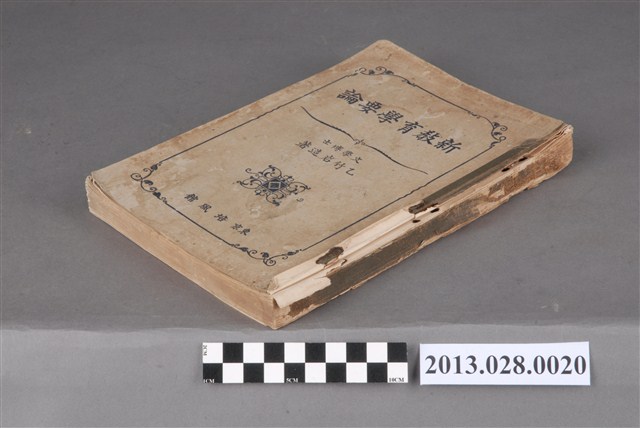 本件為乙竹岩造著,培風館發行之《新教育學要論》。封面含第2頁以前已脫落。第3頁起至22頁佚失。推估應是郭江讚先生於師範學校時所使用的書籍。