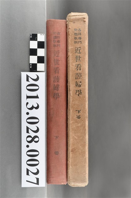 1、本件為井上誠夫等著,金原商店發行之《近世看護婦學 下卷》。據捐贈人描述,原為其母親林霞蘭女士持有,應為學習、考試或執業所用。 2、內容有內科看護法、小兒科看護法、傳染病看護法、精神病學及其看護法、外科看護法、繃帶學、婦人科看護法、產科看護法(附初生兒看護法)、皮膚科看護法、泌尿器科看護法、黴毒科看護法、齒科學、耳鼻咽喉科看護法、眼科看護法、藥劑療法、調劑法等。