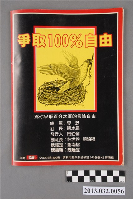《自由時代》系列雜誌為鄭南榕所創辦,創刊於1984年3月,以「爭取百分之百的言論自由」為主旨,對當時執政黨的嚴密的言論及思想控制多所批判,因而屢遭查扣或停刊。本刊(發展週刊)時由李敖擔任總監,周伯倫任發行人,陳水扁任社長。