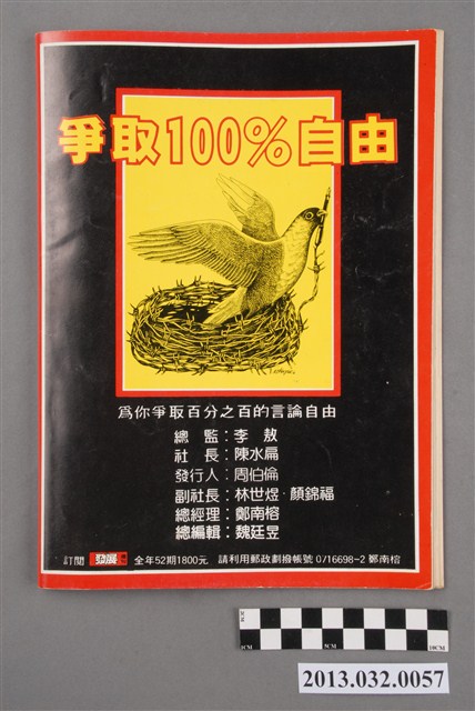《自由時代》系列雜誌為鄭南榕所創辦,創刊於1984年3月,以「爭取百分之百的言論自由」為主旨,對當時執政黨的嚴密的言論及思想控制多所批判,因而屢遭查扣或停刊。本刊(發展週刊)時由李敖擔任總監,周伯倫任發行人,陳水扁任社長。