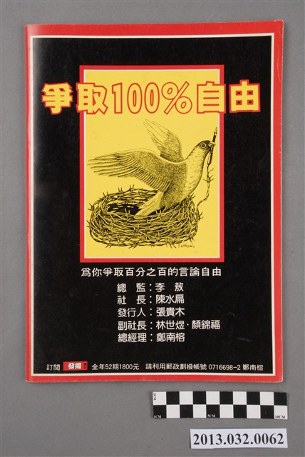 《自由時代》系列雜誌為鄭南榕所創辦,創刊於1984年3月,以「爭取百分之百的言論自由」為主旨,對當時執政黨的嚴密的言論及思想控制多所批判,因而屢遭查扣或停刊。本刊(發揚週刊)時由李敖擔任總監,張貴木任發行人,陳水扁任社長。