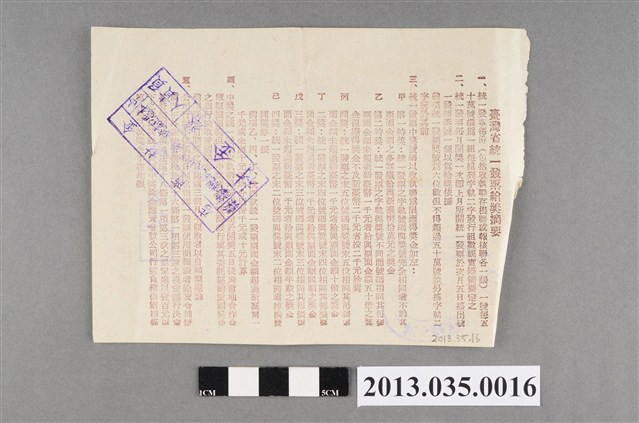 位於臺中縣清水鎮之金材商店應是販售給隆泉工廠帳冊一本,5元。惟未書寫買受人。發票號碼042416,標語左右各為:後方節約一分放費,前線增加一分力量。可見當時的反共戰爭氛圍。