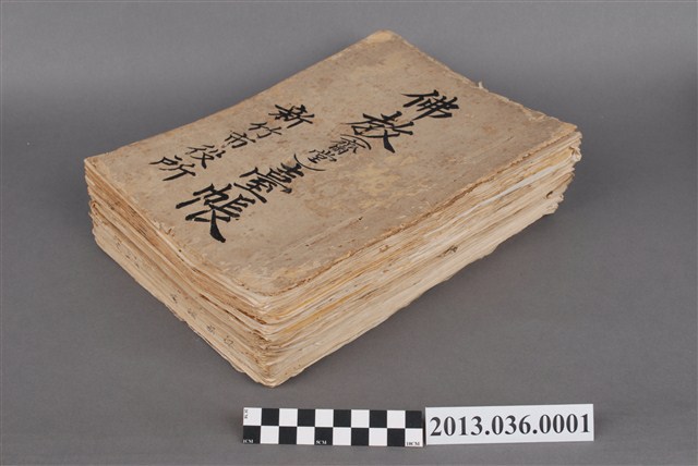 新竹市役所佛教(齋堂)臺帳。 本件臺帳資料係日本時代新竹市役所纂集之宗教調查彙編,包括教堂寺廟別、神明會別、童乩及其他小柌等,內容含括日本時代末期新竹市周邊的宗教結社概況。惟根據目錄登錄資料核對並非每間宗教會所均存有資料,少部分的資訊可能因為相關公務運用遭到抽離,未見於本臺帳資料中。