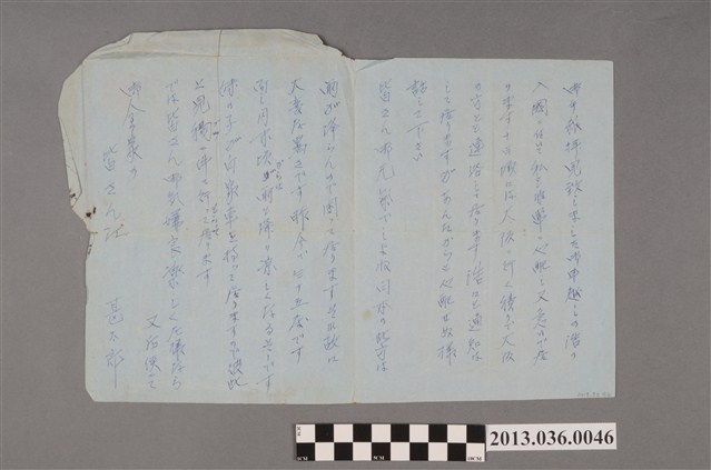 山本甚太郎先生從臺灣回到日本後,寄給養子李德生先生報平安的家書信箋。
