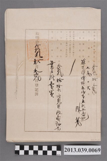 為嚴家向法院申請的土地業主權登記書。業主權為日治初期嘗試舊慣立法時的特殊名詞,旨在描述臺灣傳統地主的特殊權利,類似文件見證日治初期土地權利登記制度的轉變歷程。