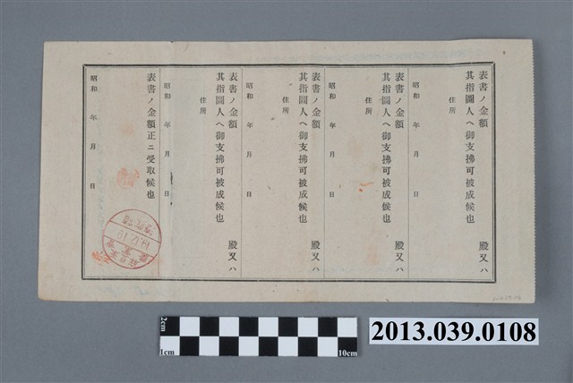 陳隱向麻豆信用購買販賣利用組合提出之借貸支票(約束手形),黏附多張利息支付證明