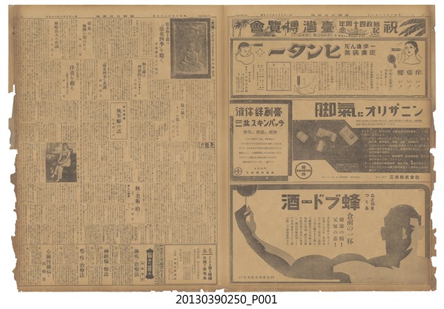 1930年代報紙,有始政四十週年臺灣博覽會宣傳