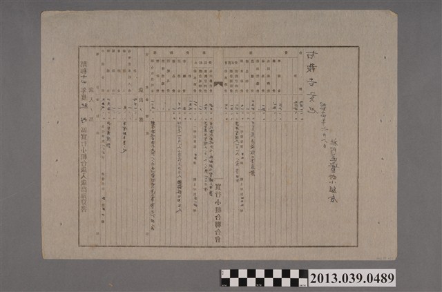 1. 本件實行小組合歲出歲入預算書,與館藏2013.039.0480~0483、0486~0493、0495同為善化灌溉區底下之實行小組合。根據館藏2013.039.0468~0477推測,這批善化灌溉區的預算書應是善化灌溉監視所負責人,向新化郡部長提出公文的附件,但目前尋無此公文。2. 社內區屬於新化郡部善化灌溉給水區域內,推測屬於新市灌溉監視所管轄。3. 本件報告時間為昭和14年(1939)6月8日,推測為該年度嘉南大圳組合的通常組合會(即預算總會)前提出的報告。4. 嘉南大圳實行小組合歲入歲出預算書的格式如下:(1)歲入ノ部:小組合費、繰越金(繰越し,即結轉,carry forward;繰越金,即結轉金額 ,amount carried forward)、補助金、寄附金(捐贈金額)、雜收入、過年度未收入金(2)歲出ノ部:事務費的項目,有聯合會負擔金、徵收費、徵收獎勵費、消耗品費、備品費、慰勞金、會議費。事業費分三個項目:I. 水稻區費有給水路費、應急補修費、灌溉管理費、共同苗代費II. 甘蔗區費則有給水路費、應急補修費、灌溉管理費III. 其他則有排水路費、構造物費、農道費、補助獎勵費、視察費、共同處辨費、雜費、準備金。※本報告為小數點後無條件捨去法、四捨五入法並用。5. 本件細部說明:(1)小組合費:5.3圓/甲*124甲=約657圓(2)繰越金:前年度繰越(3)雜收入:予金利子(即「預金利子」,即存金利息)其ノ他(4)聯合會負擔金:經常負擔甲當65錢81圓、臨時負擔農道工事費之16℅為41圓(5)慰勞金:組合長12圓*1人;小區長6圓*3人;相談役(即顧問)3圓3*人(6)水稻區之給水路費:35錢/坪*314坪,約110圓(7)水稻區灌溉管理費:通水專任管理人1人80錢/日*120日=96圓(8)水稻區共同苗代費:共同苗代(秧苗)用地6分的贌耕料(贌在文本原字為「貝卜」,依據歷史脈絡推測為贌耕費)及管理人平當(9)甘蔗區灌溉管理費:通水專任管理人1日1人80錢,30日分(10)排水路費:32錢/坪*222坪=71圓(11)農道費:第三區農道施設工事監督(曾明德撰寫)