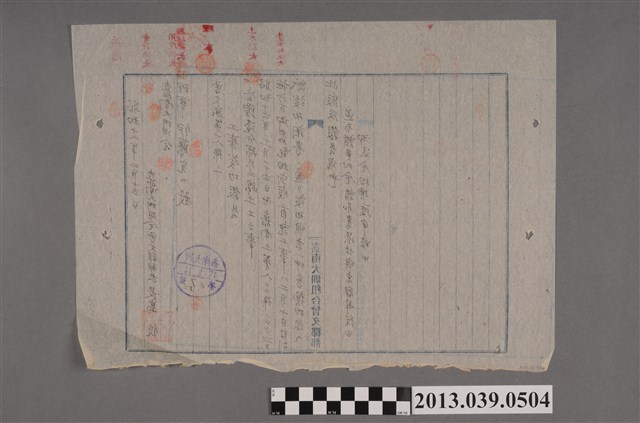 1. 本文為嘉南大圳組合曾文郡部部長長島信,提交給嘉南大圳組合理事伊藤完二的工事竣工報告,為坔頭港分線外2線綜土工工事。文號為「曾文庶第18號之1」。2. 全文如下:「(印:嘉南大圳組合本部收文時間:昭和17.2.14,收文第67-2號)昭和17年2月13日嘉南大圳組合曾文郡部部長長島信嘉南大圳組合理事伊藤完二殿曾文庶第18號ノ1工事竣功報告坔頭港分線外二線土工工事昭和16年11月24日附嘉南土第802號ノ2ヲ次テ施行方御委記相成候。首記工事ハ2月10日付別紙竣功調書ノ通リ竣功候條一件書類相係ヘ。此段及報告候也。追而請負代金請求書添付候條郡部經由御送金相煩度申候 行(按:此字待考)欄外註記:供閱;會計係長、用度係長、經理課長(中村)、理事(伊藤)、土木課長(柴田)、土木事務係長」(曾祥宇、曾明德撰寫)