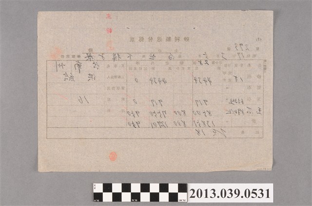 1.此件為「砂利類送付傳票」,編號第293號,記錄昭和17年(1942年)3月5日自白芒至下揖子寮之礫石運送情形,為當時台南州(今嘉義縣)之範圍。2.根據命令第28號(臺史博館藏登錄號:2013.039.0524),共需輸送形質1寸的砂利44.34立坪、形質6寸以上的玉石9.17立坪,以及形質8寸以上的玉石85立坪,共計138.51立坪。此傳票當日輸送了形質8寸以上的玉石8立坪,分16車載送,累計已輸送75.5立坪,故送付未濟一欄中,形質8寸以上的玉石尚有9.5立坪未輸送。(立坪為體積單位,1立方公尺約為0.166375立坪)3.傳票上有主幹福林、作業主任古木等核章。4.記事一欄寫有NO.18之鉛筆字樣。(曾祥宇、莊竣雅撰寫)