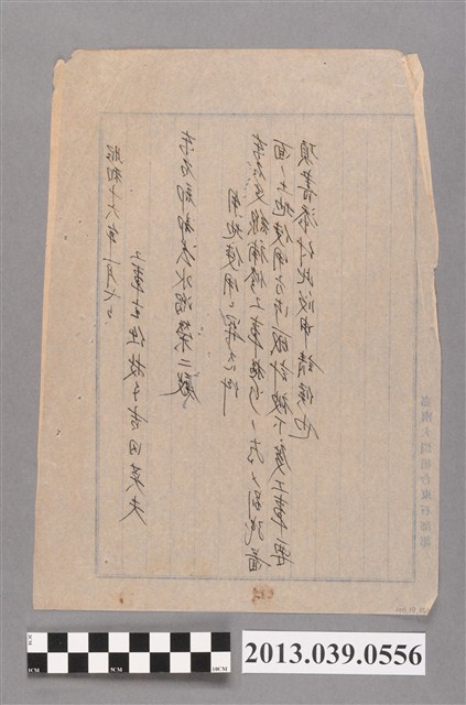 1. 本件為嘉南大圳東石郡部工事主任吉田英夫提交給東石郡部長水溜榮二,關於東石支線修補工事的用地的使用方法之公文。時間為昭和16年(1941)年1月7日。2. 全文如下:「昭和16年1月7日工事主任技手吉田英夫東石郡部長水溜榮二殿用地使用ニ關スル件東石支線補修工事施行ノ為メ別紙圖面ノ土地使用方法取計被下度工事要項書添付此段申請候也。」3. 大意為:為了東石支線的修補工事,請參考附件圖面的土地使用方法。在此附上工事要項書。為此,申請用地使用。(曾祥宇、曾明德撰寫)