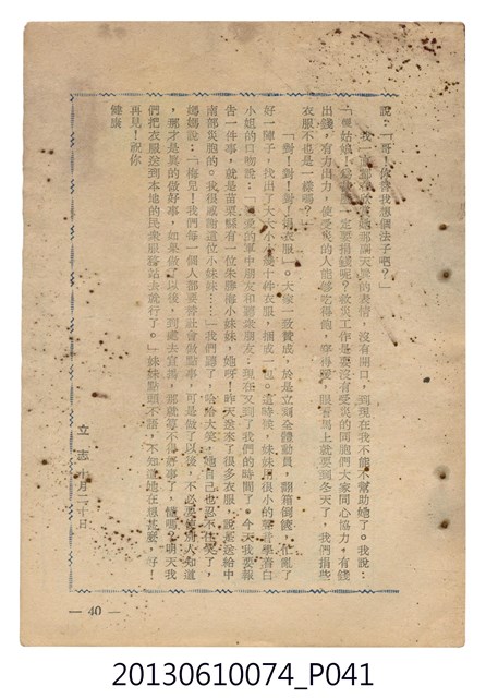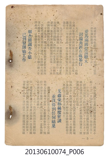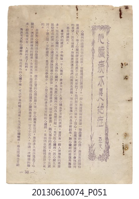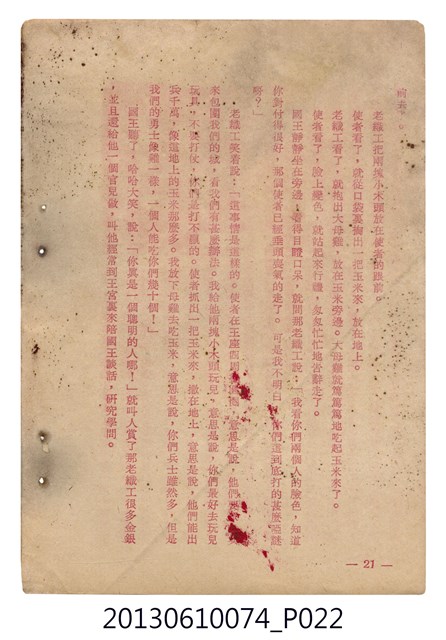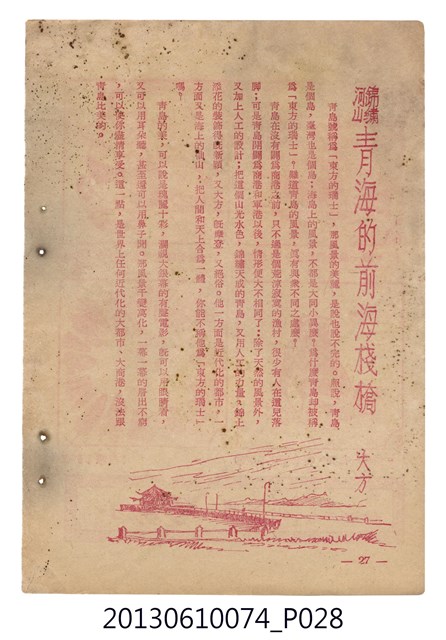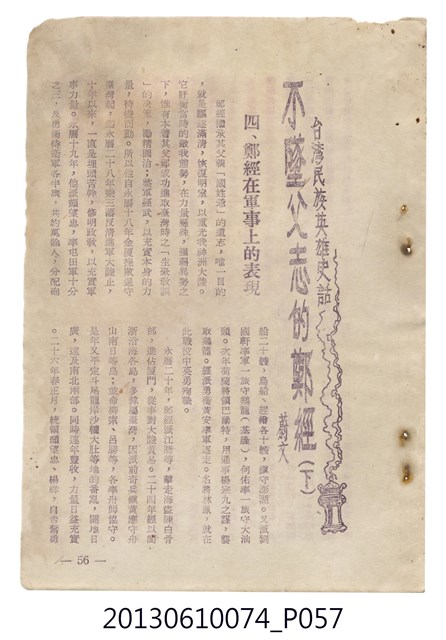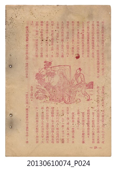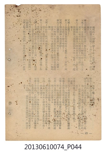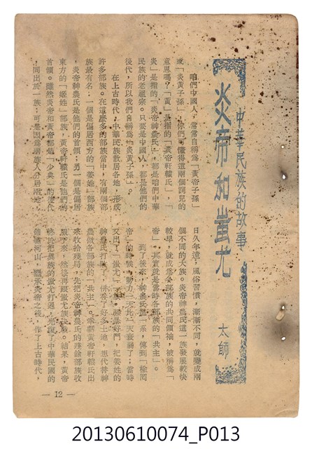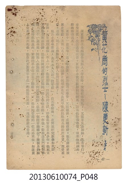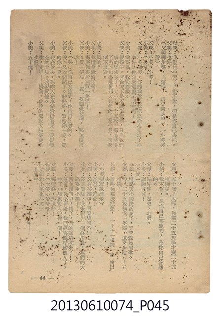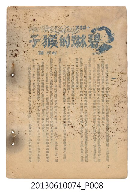 《小學生》由臺灣省政府教育廳於1951年3月20日創刊,採半月刊形式,每月5日、20日為發行日,至1966年停刊。內容包含童話、故事、小說、語文學習、科學、常識、史地、圖畫、兒歌、人物介紹、新書介紹,等各類專欄,也有提供兒童創作的「小天地」。紀錄了1950、1960年代部分社會情狀以及兒童生活。館藏自1957年9月到1966年6月間之《小學生》,計127冊(本案125件,另有館藏2013.014.0003、2013.014.0004等2件),約佔總刊數394之32%。均為32開本,採書訂包裝,封面為彩色印刷,內文為黑、藍、橘、紅間用之單色印刷。於1961年8月以前每期64頁,每本2.5元;自1961年9月起每期96頁,每本4.5元。本件為小學生雜誌社出版《小學生》206號(新第160號)。封面繪有臺灣及疑為澎湖、綠島、蘭嶼等島嶼,中間以紅字書有「慶祝光復節」等五字。內容有〈炎帝和蚩尤〉、〈卡拉和他的油畫〉、〈英國女王伊麗莎白二世〉、〈黃花崗上的烈士─陳更新〉等人物傳記、歷史故事及其他文章。本件缺封底頁。