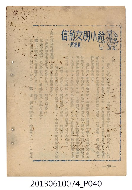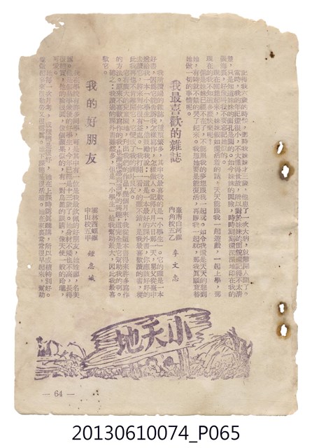 1、邱各容,《臺灣兒童文學史》(臺北:五南,2005),頁37-69。2、 林佩縈,2006。〈1950年代臺灣兒童期刊發展之研究──以《學友》、《東方少年》為例〉,國立臺北教育大學社會科教育學系歷史組專題研究論文,頁19-20。