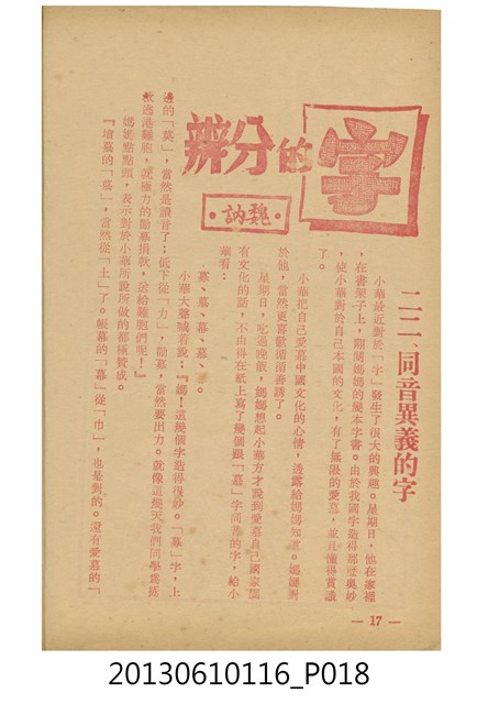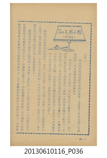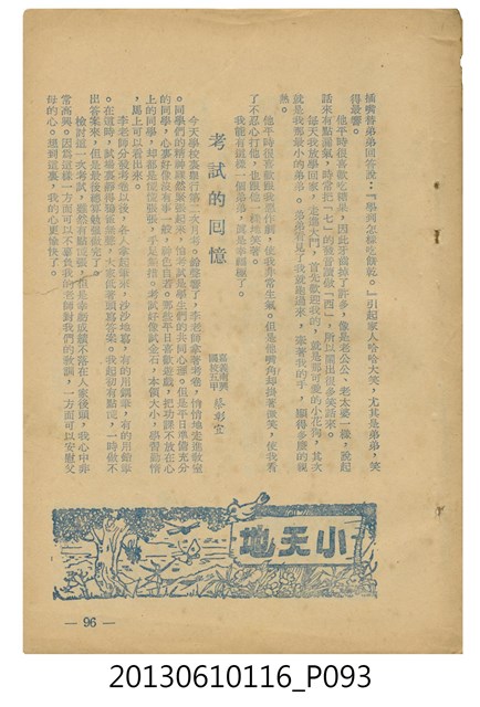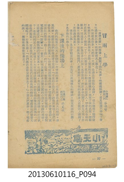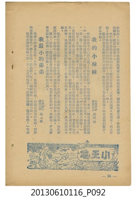 1、邱各容,《臺灣兒童文學史》(臺北:五南,2005),頁37-69。2、 林佩縈,2006。〈1950年代臺灣兒童期刊發展之研究──以《學友》、《東方少年》為例〉,國立臺北教育大學社會科教育學系歷史組專題研究論文,頁19-20。