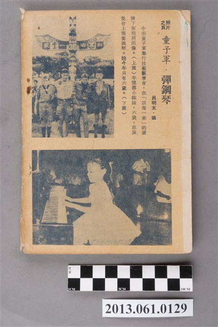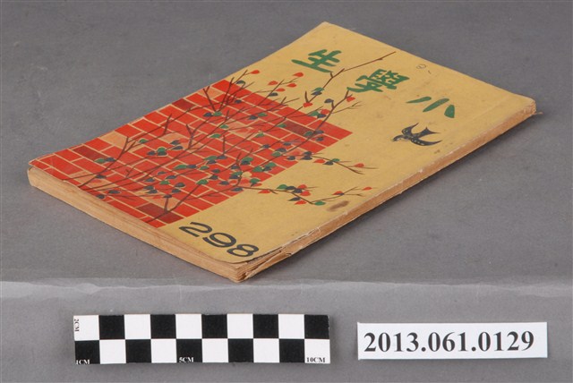 《小學生》由臺灣省政府教育廳於1951年3月20日創刊,採半月刊形式,每月5日、20日為發行日,至1966年停刊。內容包含童話、故事、小說、語文學習、科學、常識、史地、圖畫、兒歌、人物介紹、新書介紹,等各類專欄,也有提供兒童創作的「小天地」。紀錄了1950、1960年代部分社會情狀以及兒童生活。館藏自1957年9月到1966年6月間之《小學生》,計127冊(本案125件,另有館藏2013.014.0003、2013.014.0004等2件),約佔總刊數394之32%。均為32開本,採書訂包裝,封面為彩色印刷,內文為黑、藍、橘、紅間用之單色印刷。於1961年8月以前每期64頁,每本2.5元;自1961年9月起每期96頁,每本4.5元。本件為小學生雜誌社出版《小學生》298號(新第252號)。封面為磚牆、樹與鳥的圖繪。內容有〈美國下屆總統候選人─參議員戈德華〉、〈吳王闔廬死在檇李〉、〈晏子出使到楚國〉、〈寬大的蕭成〉等人物傳記、歷史故事及其他文章。封底為中美童子軍、以及表演鋼琴獨奏的小朋友攝影。