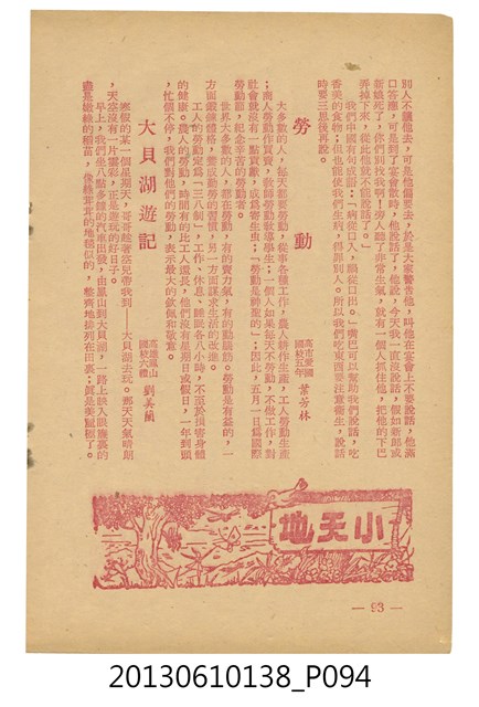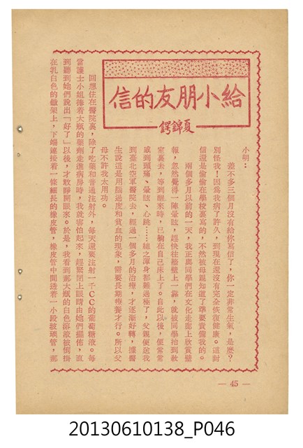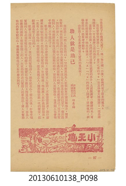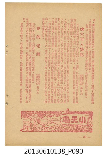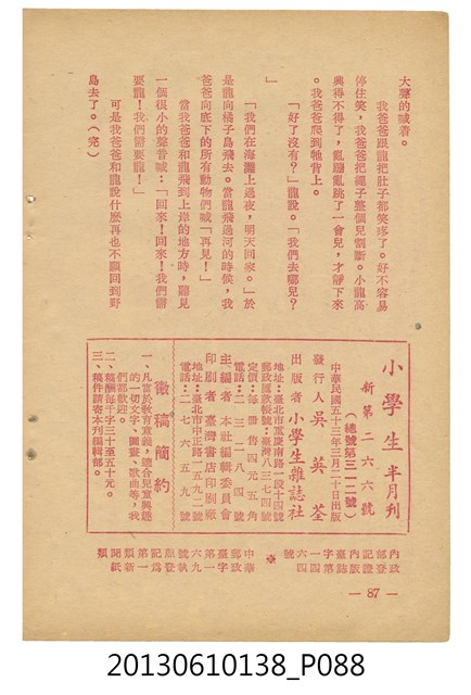 1、邱各容,《臺灣兒童文學史》(臺北:五南,2005),頁37-69。2、 林佩縈,2006。〈1950年代臺灣兒童期刊發展之研究──以《學友》、《東方少年》為例〉,國立臺北教育大學社會科教育學系歷史組專題研究論文,頁19-20。