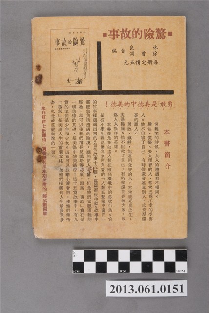 《小學生》由臺灣省政府教育廳於1951年3月20日創刊,採半月刊形式,每月5日、20日為發行日,至1966年停刊。內容包含童話、故事、小說、語文學習、科學、常識、史地、圖畫、兒歌、人物介紹、新書介紹,等各類專欄,也有提供兒童創作的「小天地」。紀錄了1950、1960年代部分社會情狀以及兒童生活。館藏自1957年9月到1966年6月間之《小學生》,計127冊(本案125件,另有館藏2013.014.0003、2013.014.0004等2件),約佔總刊數394之32%。均為32開本,採書訂包裝,封面為彩色印刷,內文為黑、藍、橘、紅間用之單色印刷。於1961年8月以前每期64頁,每本2.5元;自1961年9月起每期96頁,每本4.5元。本件為小學生雜誌社出版《小學生》326號(新第280號)。封面為泡在水中、開心的笑著的鱷魚圖繪。內容有〈戰國時代的突然出現〉、〈勾踐滅吳〉等人物傳記、歷史故事及其他文章。封底為小學生叢書的訂購宣傳。