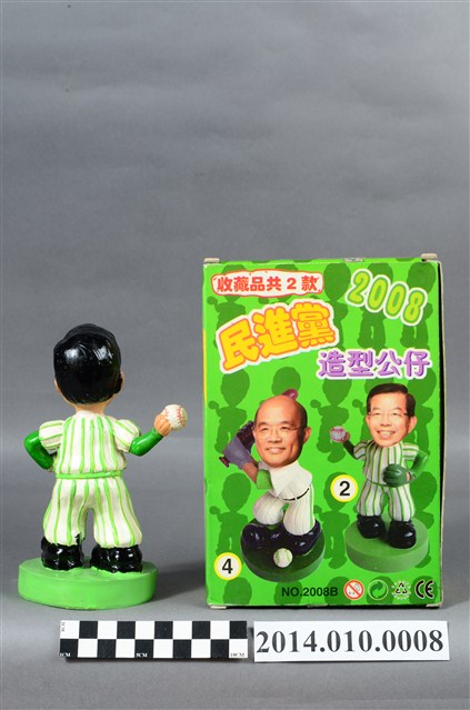 競選商品的紛陳推出,是為台灣選舉文化的一部分。此為2008年民主進步黨總統及副總統候選人謝長廷與蘇貞昌,所推出的競選商品。近代的政治界,會推出候選人娃娃,作為競選宣傳品的一部份,以宣達其政治主張及理念。