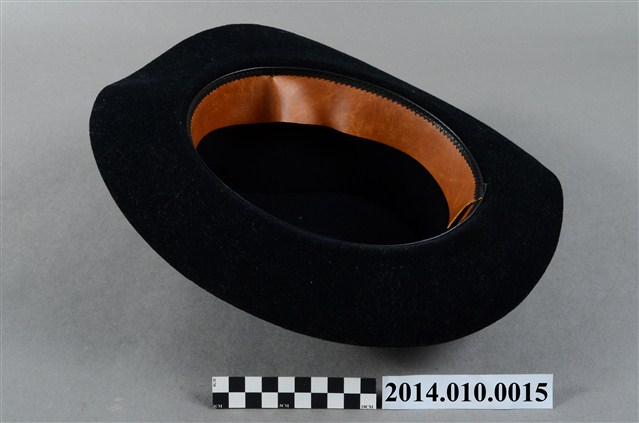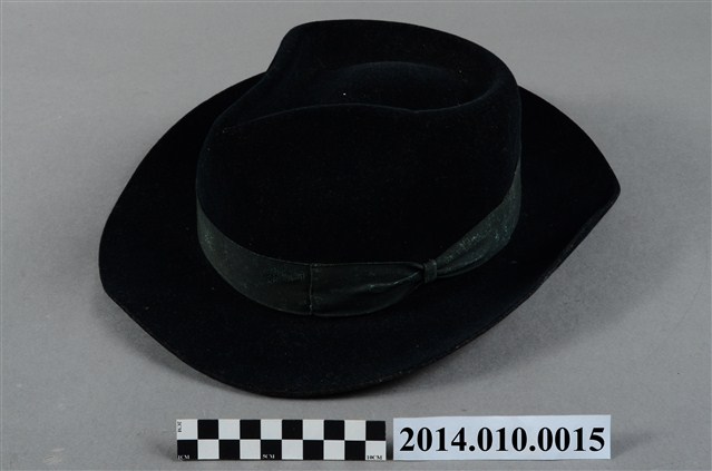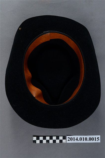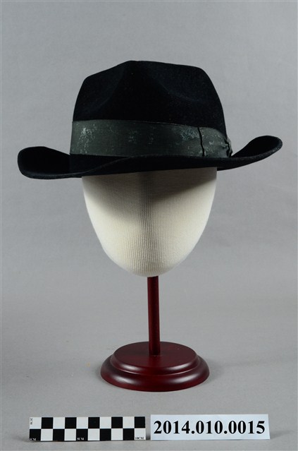 本件為咖啡色的絨布紳士帽,繫有緞帶。