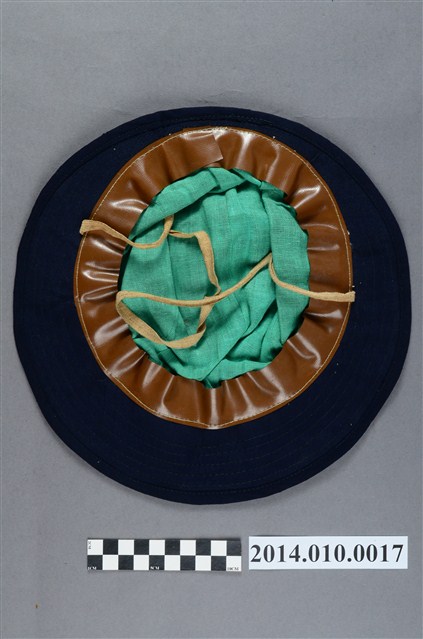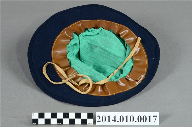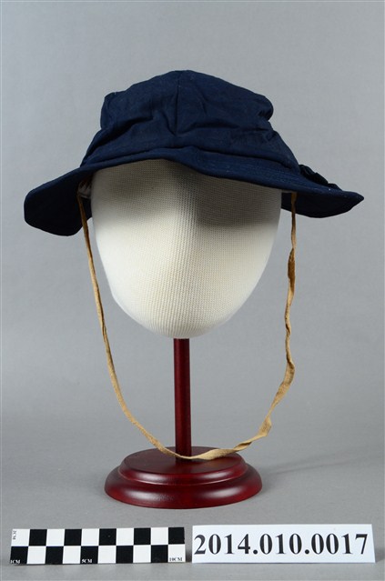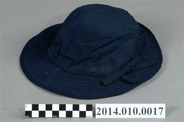 本件為日本時代小學生使用的帽子,為深藍色的布帽,為女性用帽,綴有結飾。