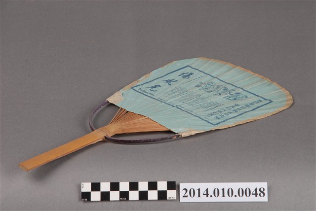 本件由麻豆龍泉西藥房致贈之紀念扇子,扇面寫有:「麻豆鎮」、「 龍泉西藥房」。