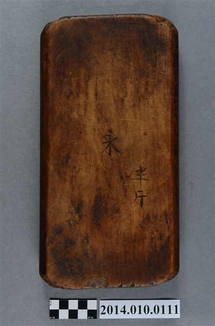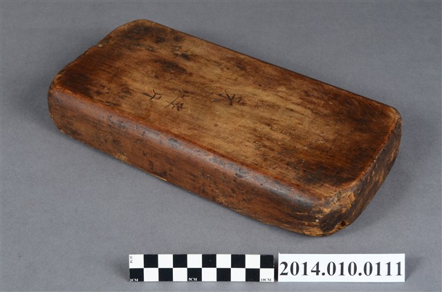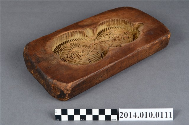 木製印模,上刻有葫蘆及「壽」字,推測應為糕餅使用的印模。