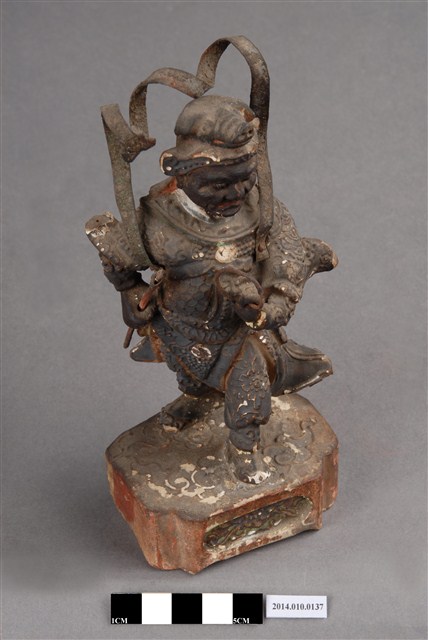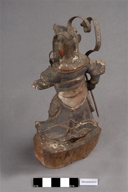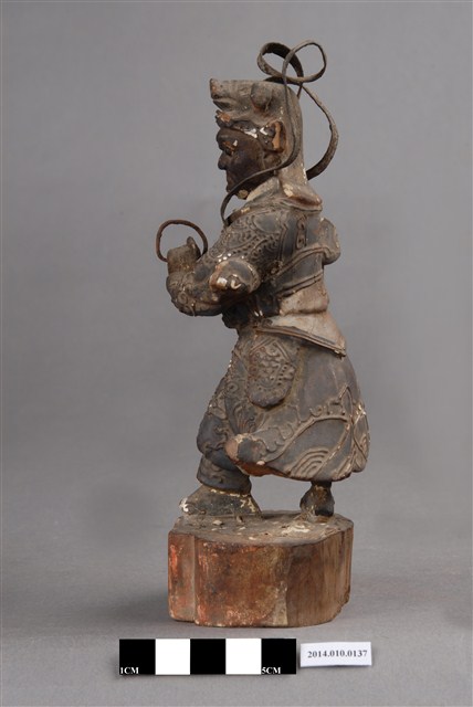 此一物件的天蓬元帥呈輕微的弓箭步站姿,左腳在前,面部傾左前方。左右手皆持有物件,有部分的塗漆脫落。天蓬元帥為道教神祇,北極紫微大帝的四位護衛之一。