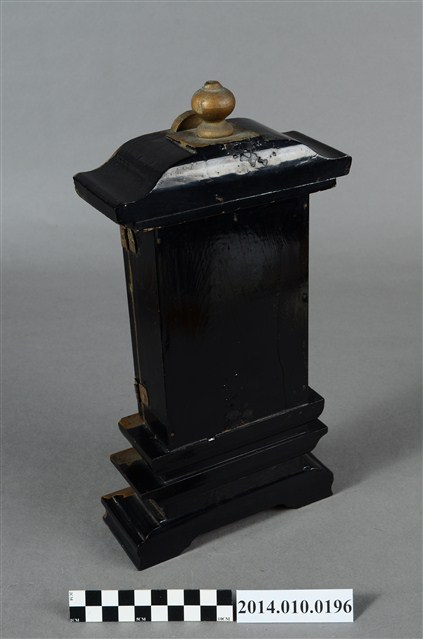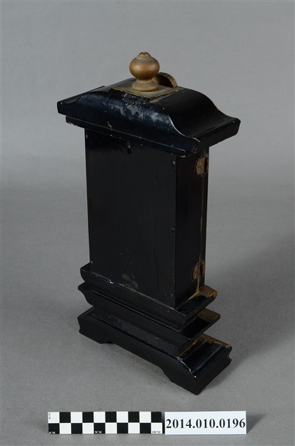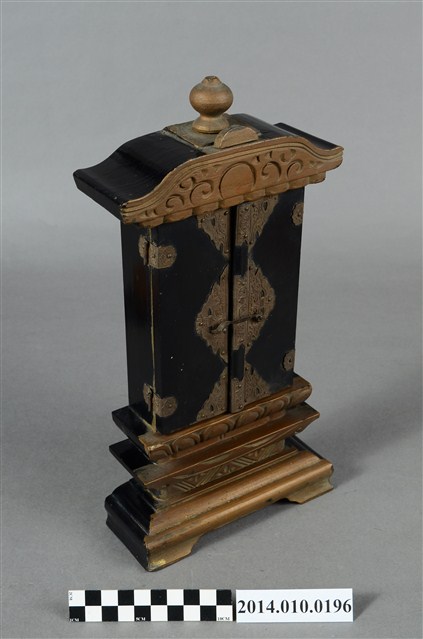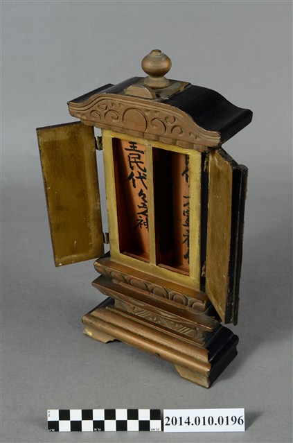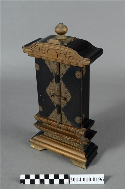 為供奉神祇或祖先的神龕,閣門內寫有:「皇民代代之神」,推測應為日治時代神道教相關之物件。