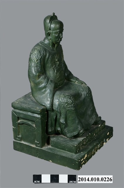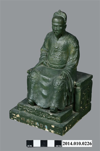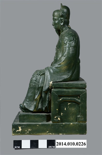 靖寧王塑像,為石膏材質,塗以銅綠色,底座前端寫有:「明靖寧王聖像」。物件的時間及使用者脈絡不明。 創作者為邱火松,為台南知名的素人雕塑民藝家,曾獲薪傳獎。