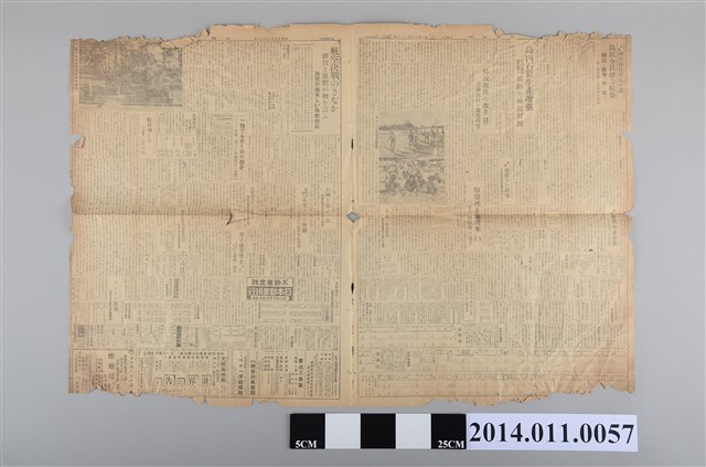 2.《臺灣日報》,前身為日本時代在臺南創立之《臺南新報》,《臺南新報》1899年由富地近思創辦,與《臺灣日日新報》、《臺灣新聞》並稱為日治時期臺灣三大官報,與《臺灣日日新報》相比《臺南新報》屬於地方報紙,其報導內容雖仍有世界、日本及臺灣各地消息,但比較他報相比專注於南部消息,且內容較為活潑,對於南部的經濟、米、糖報導較為精確,1937年4月中日戰事將起,日本當局下令所有報刊停止漢文欄,《臺南新報》更名為《臺灣日報》。1944年3月又與《臺灣日日新報》、《臺灣新聞》、《興南新聞》、《東臺灣新報》、《高雄新報》6家日報同遭廢刊,而後齊併為《臺灣新報》刊行。由報導內容看來,戰爭消息已成為主要篇幅,且可能受戰事影響,物資缺乏,刊載篇幅已從8面縮減至1面。昭和19年(1944)1月15日。