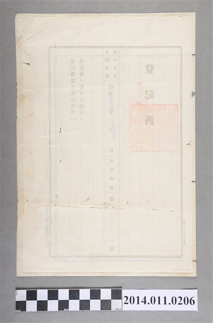 1. 本文物為昭和13年(1938)12月20日持公賣渡證書,其性質與土地有關,並列有保管規則、土地利用等相關事項,如同今日之定型化契約,賣渡人苗栗郡公館庄蔴齊寮二七二番地梁阿化,買主為苗栗郡公館庄蔴齊寮九三番地支張永華,立會人為張維錦,內容詳細記錄土地位置與大小共三筆,以上買賣主與立會人皆有蓋以戳章,此次賣渡金額為三百圓,文內不時蓋有不動產表示之章。