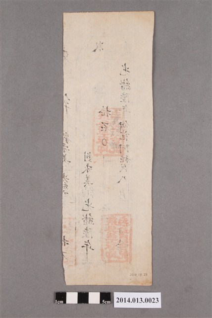 為業主吳益春即金盛吉給東興庄佃戶劉永美繳納該年分租粟拾石的收單(證明)。另有三方「業主吳益春即金盛吉記」,其一作為騎縫章。