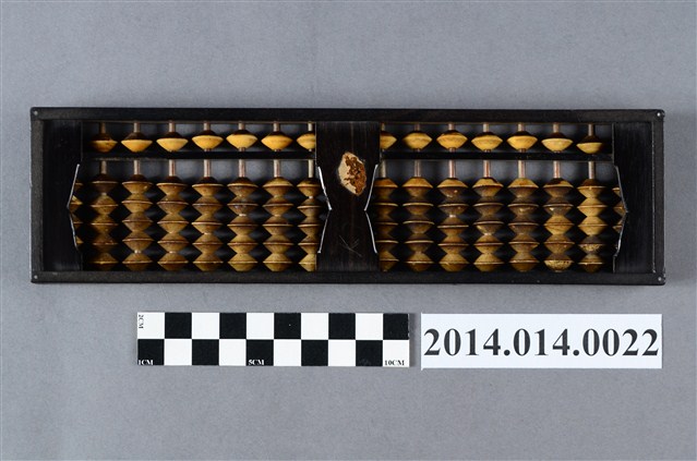 據捐贈者記憶,該算盤為父親黃崑燿遺留的文物,為隨身計算使用。