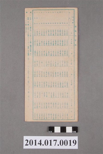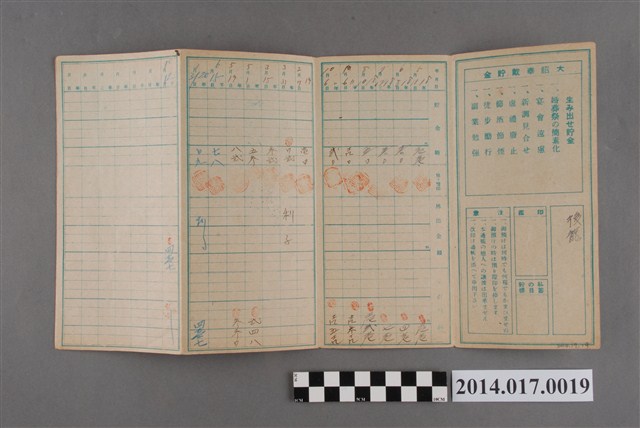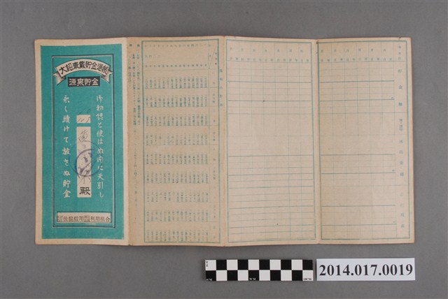 地址處僅有後龍。本物件為戰爭期間1943年~1945年期間後龍、公司寮、水尾子、二張犁、大山腳、頭湖、崎頂等地人民之銷帳儲金簿,內頁印有大詔奉戴字樣,並以婚葬儀式簡化、宴會遠慮、新謁見合せ、虛禮廢止、節酒節煙、徒步勵行、副業勉強倡導儲金,另外印有儲簿規定如:不許轉讓、改印需申請等,背頁附有複利合計表。大詔指的是1941年對美、英兩國之宣戰詔書,1942年起每個月8日定為大詔奉戴日,為日本政府為太平洋戰爭所運作的國民運動,隨著戰爭規模擴大,戰時有各項國民強迫儲蓄的舉措,以支援前線戰事,1938年日本政府為因應中日戰爭即推行有愛國儲蓄運動,本物件則為1942年後因應戰爭規模擴大後之儲蓄項目,范雅鈞指出本儲金簿為強制存款,直接由薪資扣除。