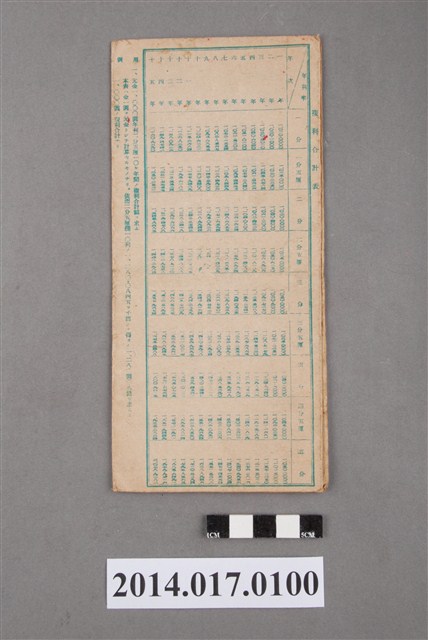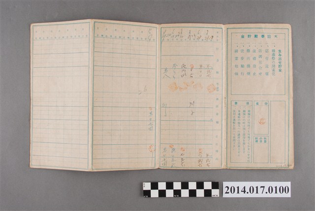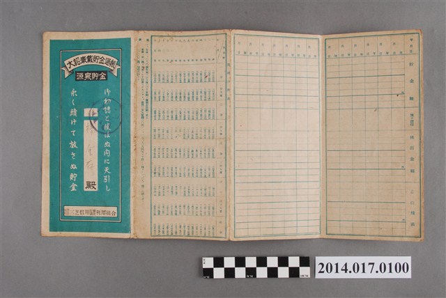 本物件為戰爭期間1943年~1945年期間後龍、公司寮、水尾子、二張犁、大山腳、頭湖、崎頂等地人民之銷帳儲金簿,內頁印有大詔奉戴字樣,並以婚葬儀式簡化、宴會遠慮、新謁見合せ、虛禮廢止、節酒節煙、徒步勵行、副業勉強倡導儲金,另外印有儲簿規定如:不許轉讓、改印需申請等,背頁附有複利合計表。大詔指的是1941年對美、英兩國之宣戰詔書,1942年起每個月8日定為大詔奉戴日,為日本政府為太平洋戰爭所運作的國民運動,隨著戰爭規模擴大,戰時有各項國民強迫儲蓄的舉措,以支援前線戰事,1938年日本政府為因應中日戰爭即推行有愛國儲蓄運動,本物件則為1942年後因應戰爭規模擴大後之儲蓄項目,范雅鈞指出本儲金簿為強制存款,直接由薪資扣除。