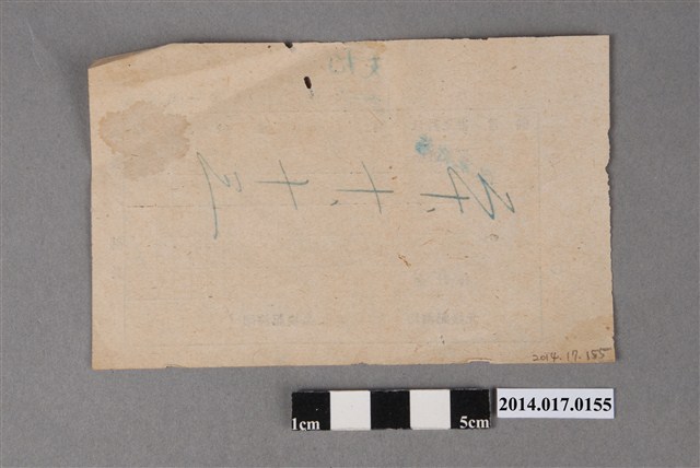 本物件為後龍庄農業會收入傳票一張,夾在兩本儲金簿之間,背後寫有二十、十、十三。