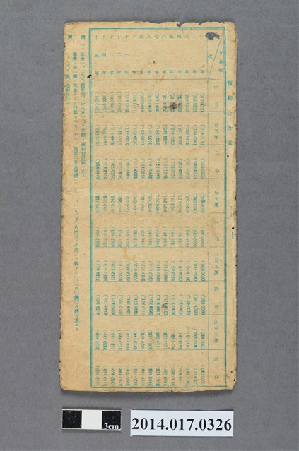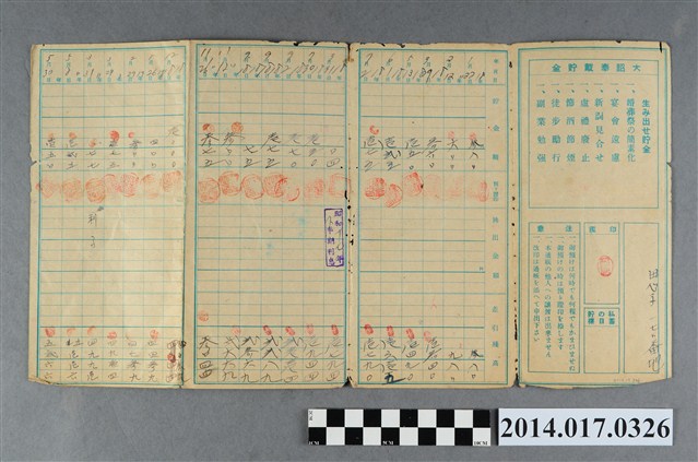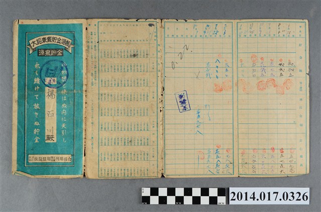 地址載為田心子170。本物件為戰爭期間1943年~1945年期間後龍、公司寮、水尾子、二張犁、大山腳、頭湖、崎頂等地人民之銷帳儲金簿,內頁印有大詔奉戴字樣,並以婚葬儀式簡化、宴會遠慮、新謁見合せ、虛禮廢止、節酒節煙、徒步勵行、副業勉強倡導儲金,另外印有儲簿規定如:不許轉讓、改印需申請等,背頁附有複利合計表。大詔指的是1941年對美、英兩國之宣戰詔書,1942年起每個月8日定為大詔奉戴日,為日本政府為太平洋戰爭所運作的國民運動,隨著戰爭規模擴大,戰時有各項國民強迫儲蓄的舉措,以支援前線戰事,1938年日本政府為因應中日戰爭即推行有愛國儲蓄運動,本物件則為1942年後因應戰爭規模擴大後之儲蓄項目,范雅鈞指出本儲金簿為強制存款,直接由薪資扣除。