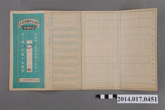 保證責任三芝信用販賣購買利用組合給林清祿大詔奉戴儲金簿